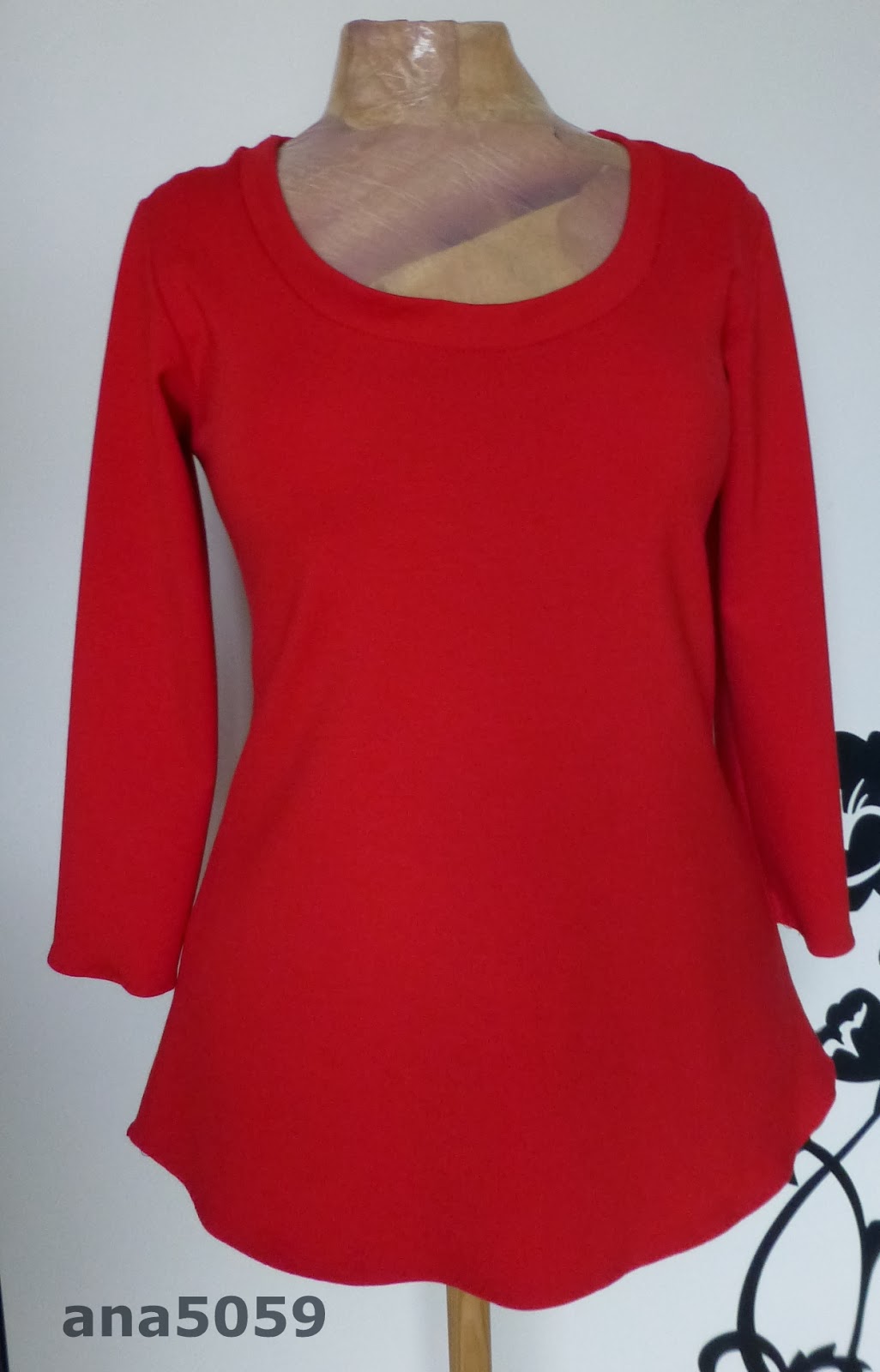 Está hecha íntegramente con la overlock porque la máquina de coser me dio problemas: saltaba puntadas, el zigzag lo hacía recto. Utilicé distintos hilos, tanto en la aguja como en la canilla, probé distintas tensiones, probé agujas de jersey de cajas diferentes, me rompió la aguja doble ¡¡argggg!!. Y no lo entiendo porque es el mismo tipo de tela con la que hice el top con fular azul marino, que está cosido con zigzag y sin problemas.