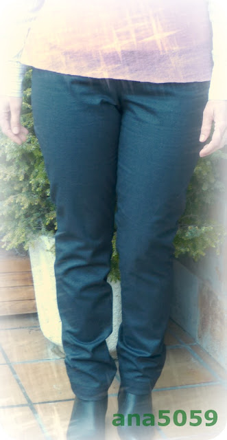 La primera prueba fue bastante mala: me quedaban algo flojos, pero además me hacían un montón de arrugas en la parte trasera de los muslos. Como no sabía solucionarlo pedí ayuda. Momita me pasó un enlace a un libro con soluciones yMaría Elena se lo tomó tan en serio que ella mismo se hizo los pantalones, se los hizo a una amiga y hasta preparó un post en El baul de las costureras con lo que había que modificar del patrón. ¡Muchas gracias, chicas!!!