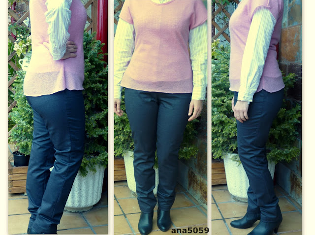 1º Correcciones de Mª Elena: hice las reducciones que sugería, tanto por delante como por detrás en la zona superior y en la mitad de los muslos, y la talla la hice intermedia (la 41 ¿?). Aun así las arrugas siguen pero no son tan horribles (si queréis ver como eran están aquí!!).