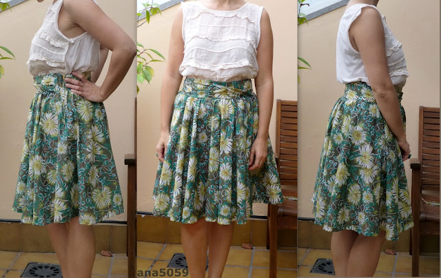 ayer mismo la terminé. Así que hoy voy a buscar la nueva en los kioskos.This is my version of this skirt, just one piece of fabric (not two). The waist is difficult. I sewed the zip appart and I used this Coletterie's tutorial to hem the edge. Hope you like it!